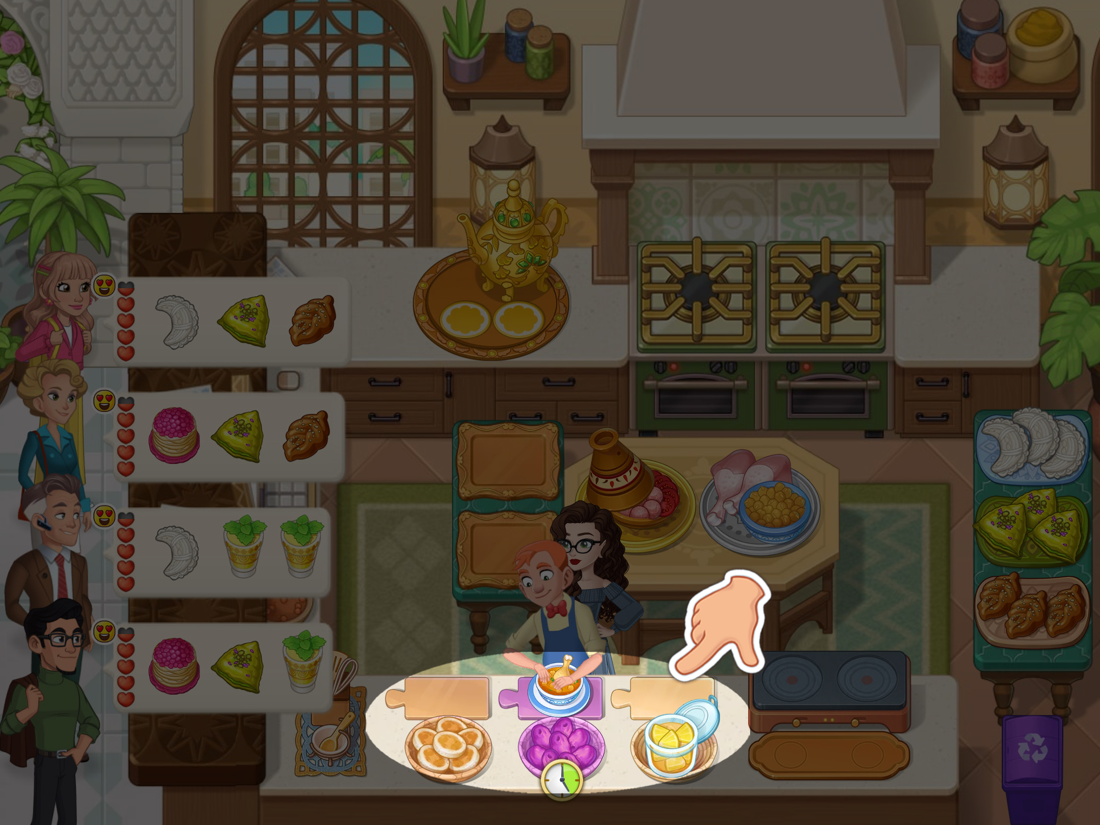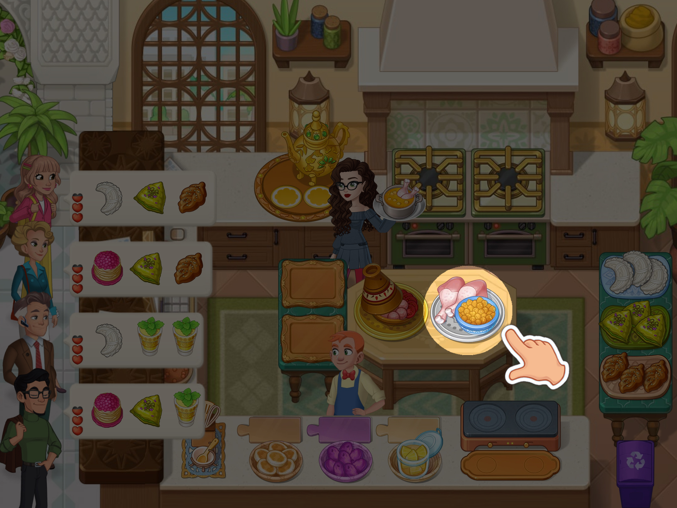 4. Falls nötig, gib das Gericht deiner Küchenhilfe — sie wird Zutaten hinzufügen.