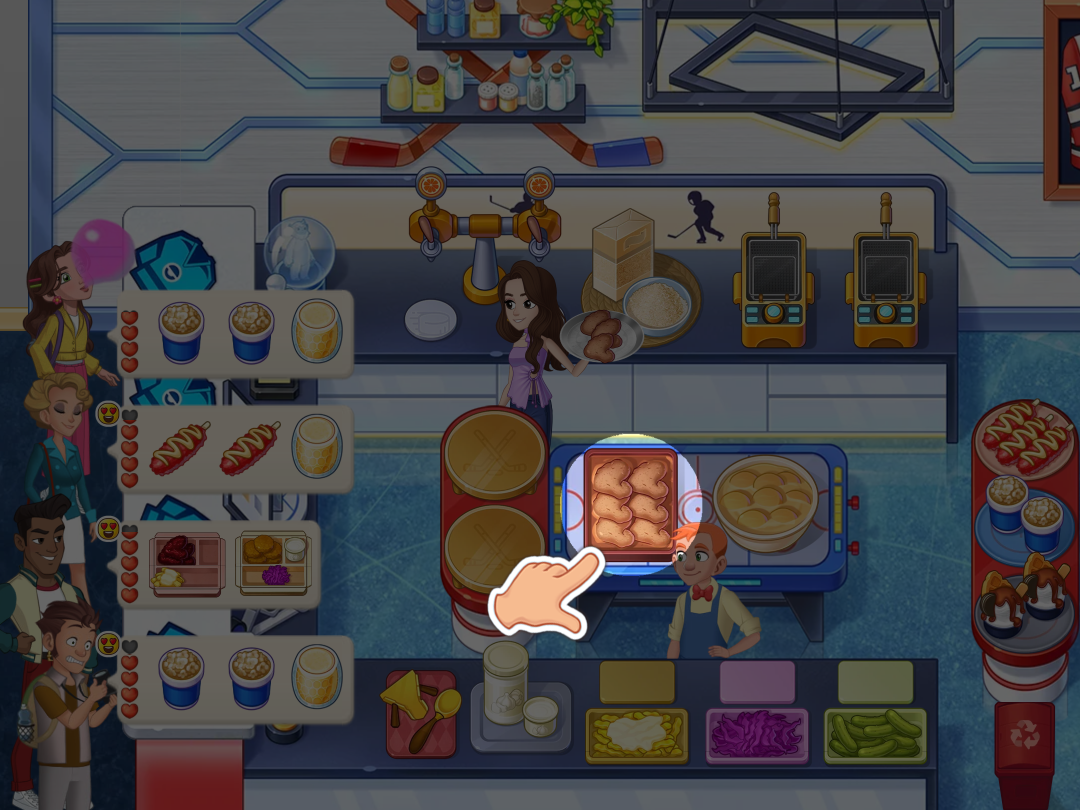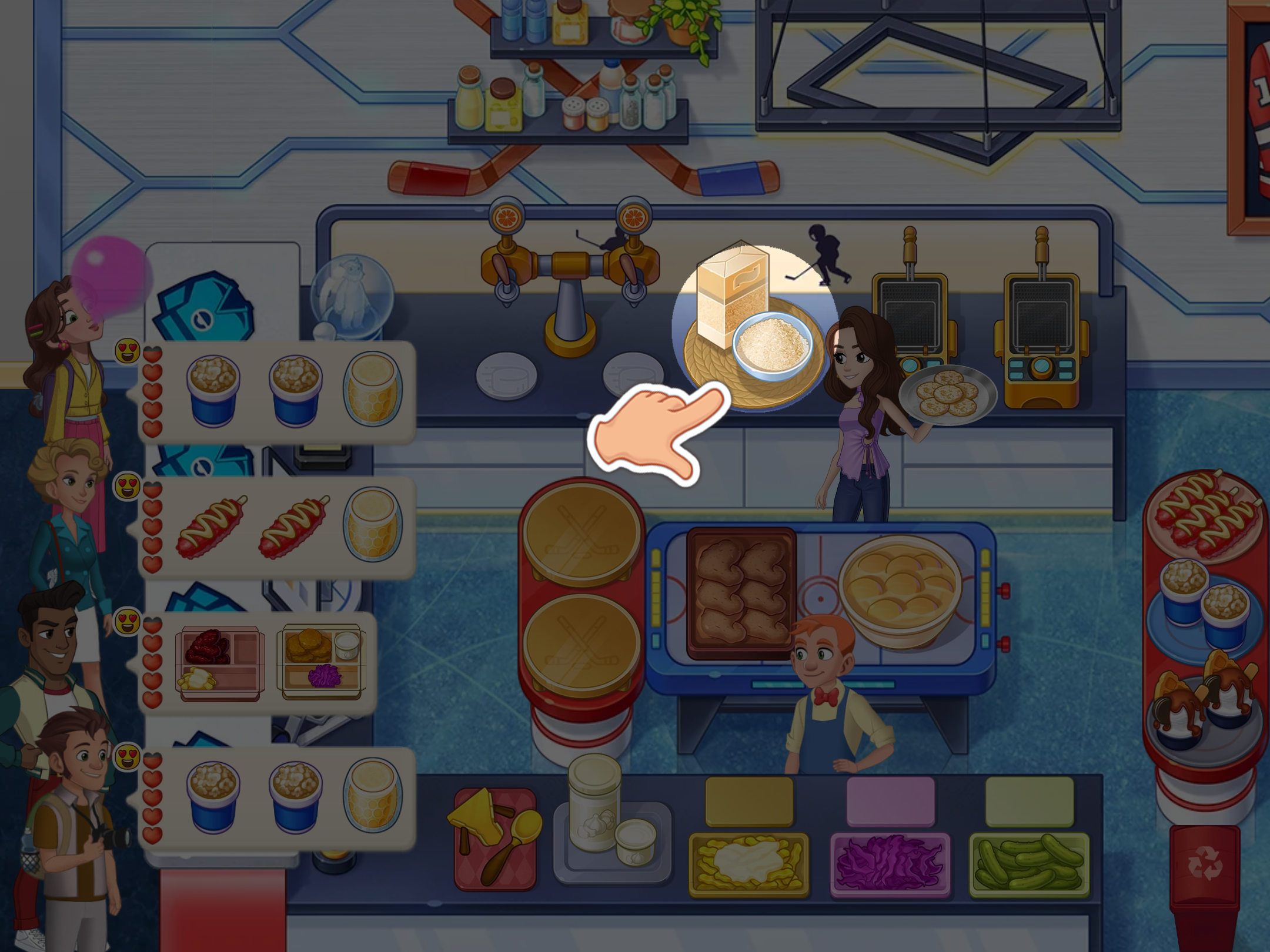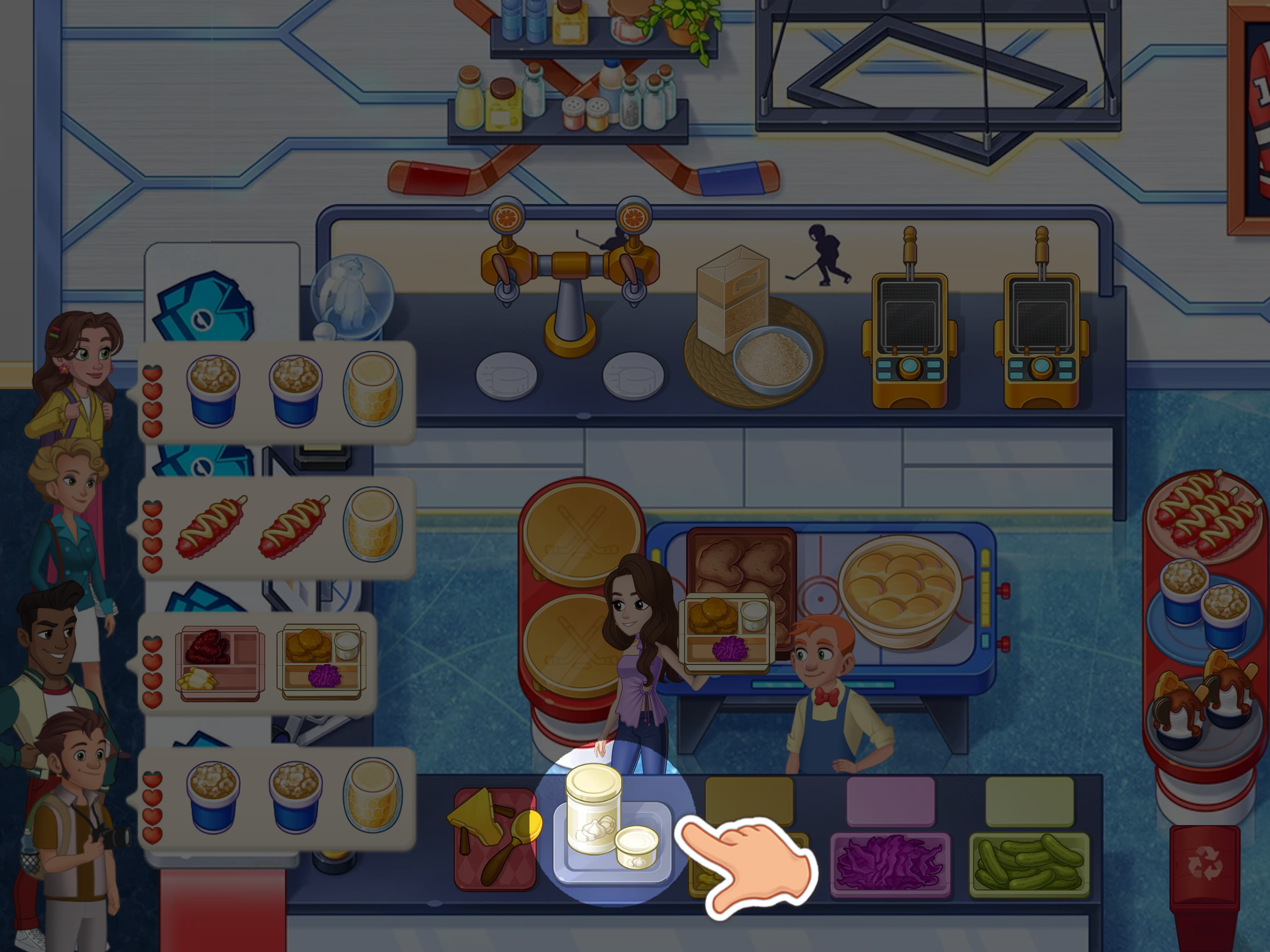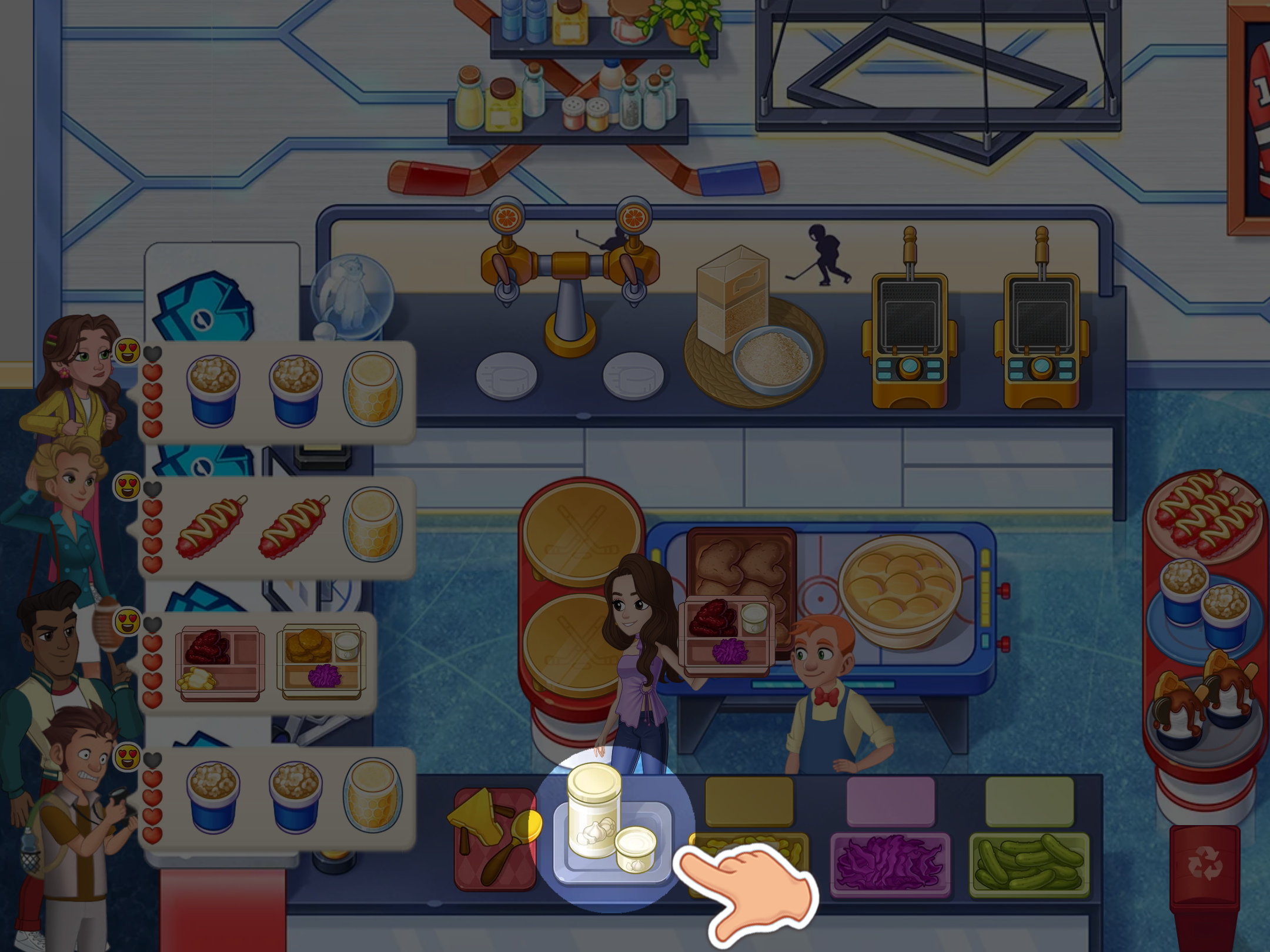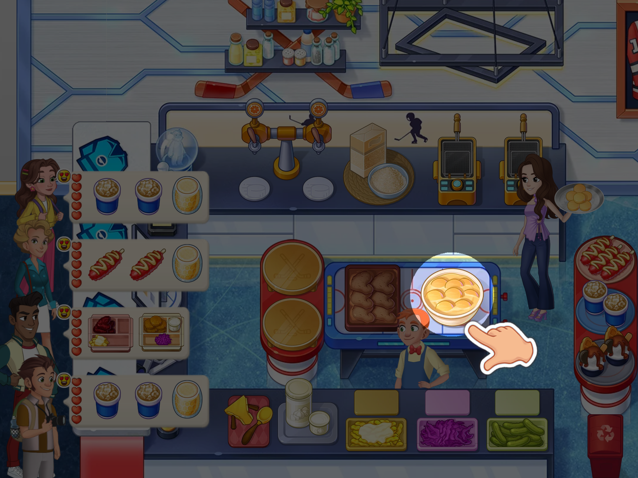 4. If needed, give the dish to your assistant—they will add ingredients.