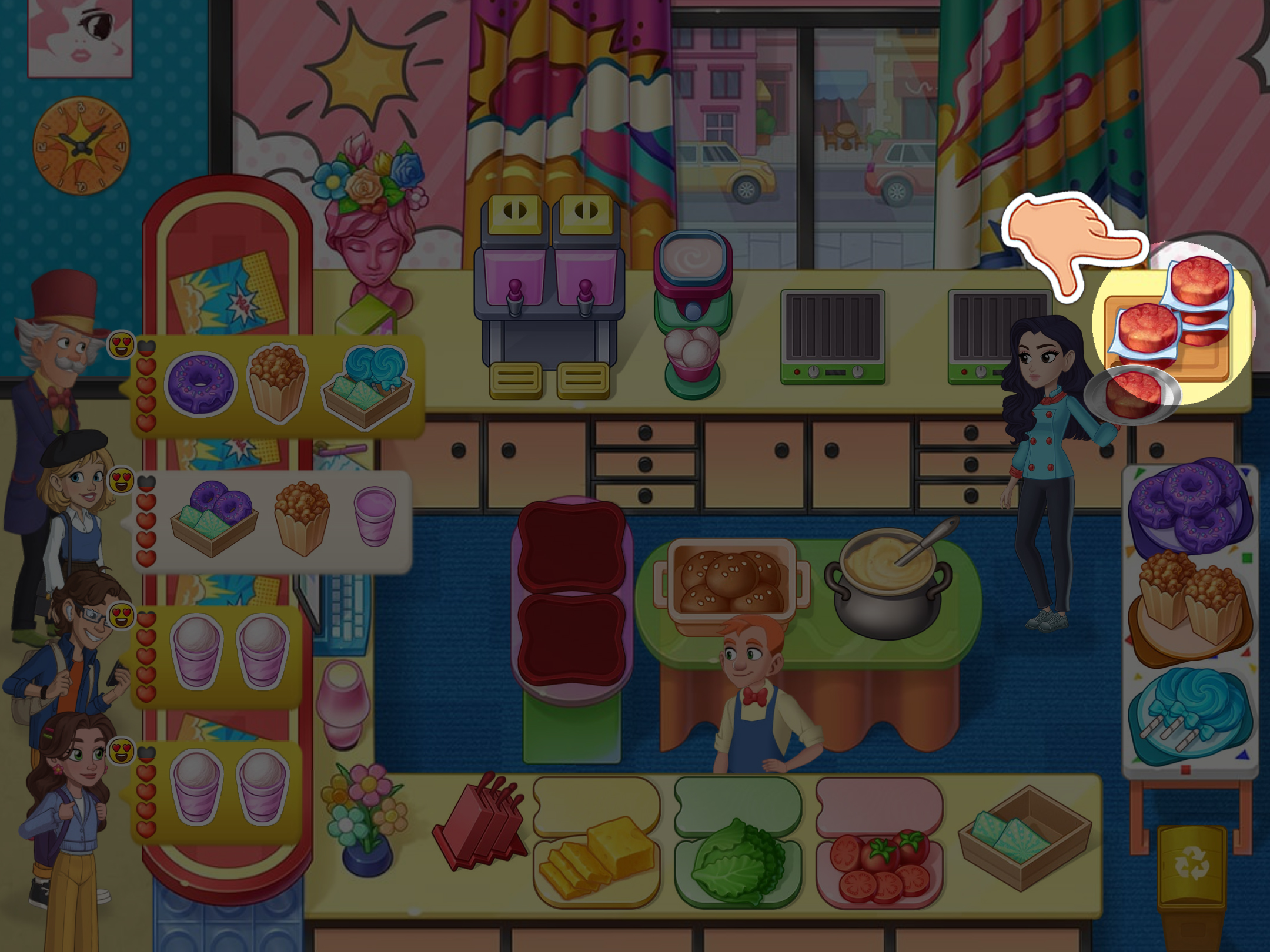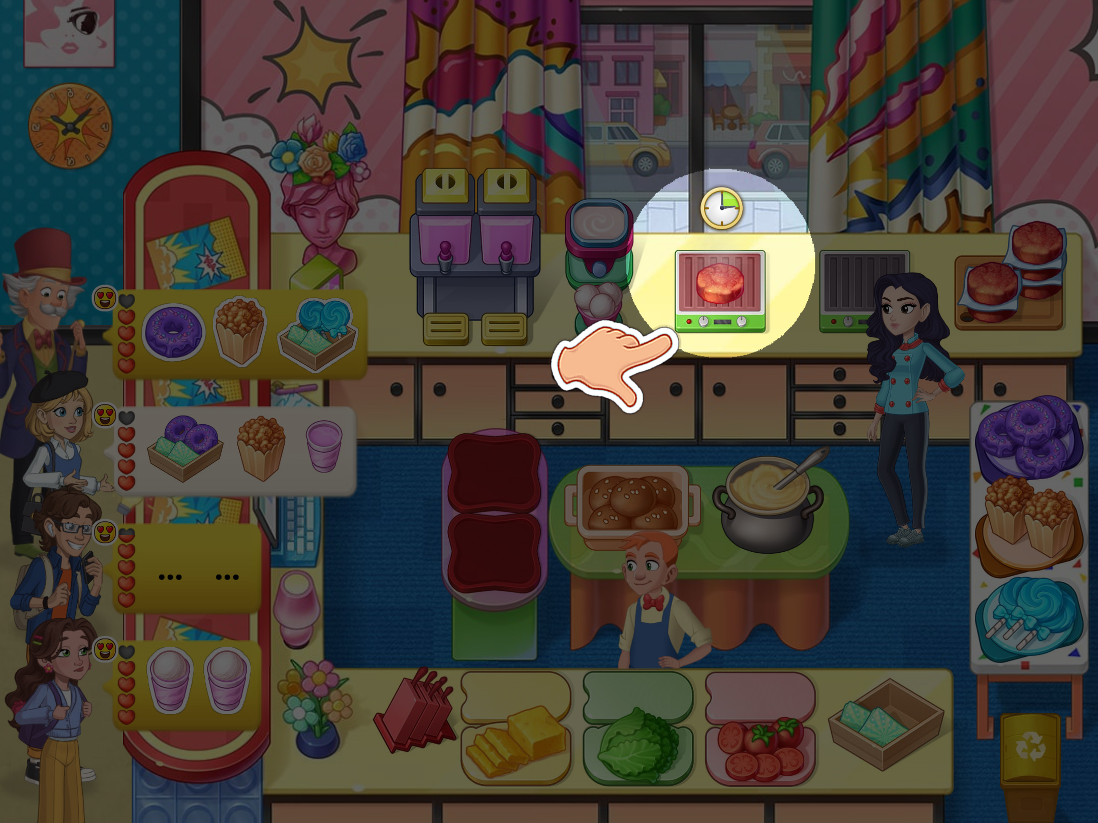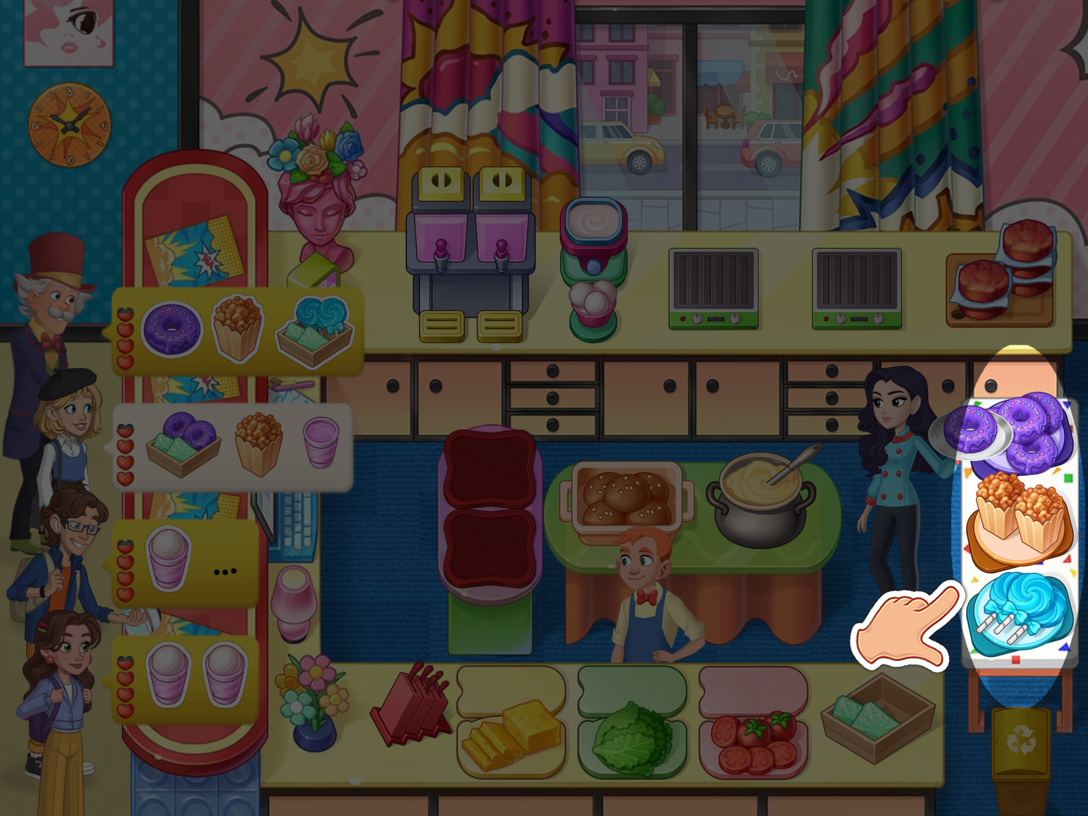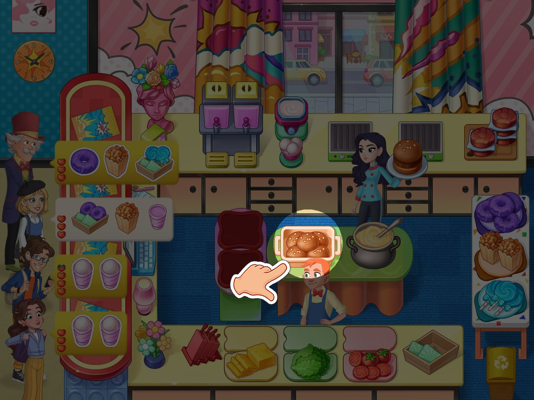 5. 必要時,將菜餚交給助手,他們會添加食材。