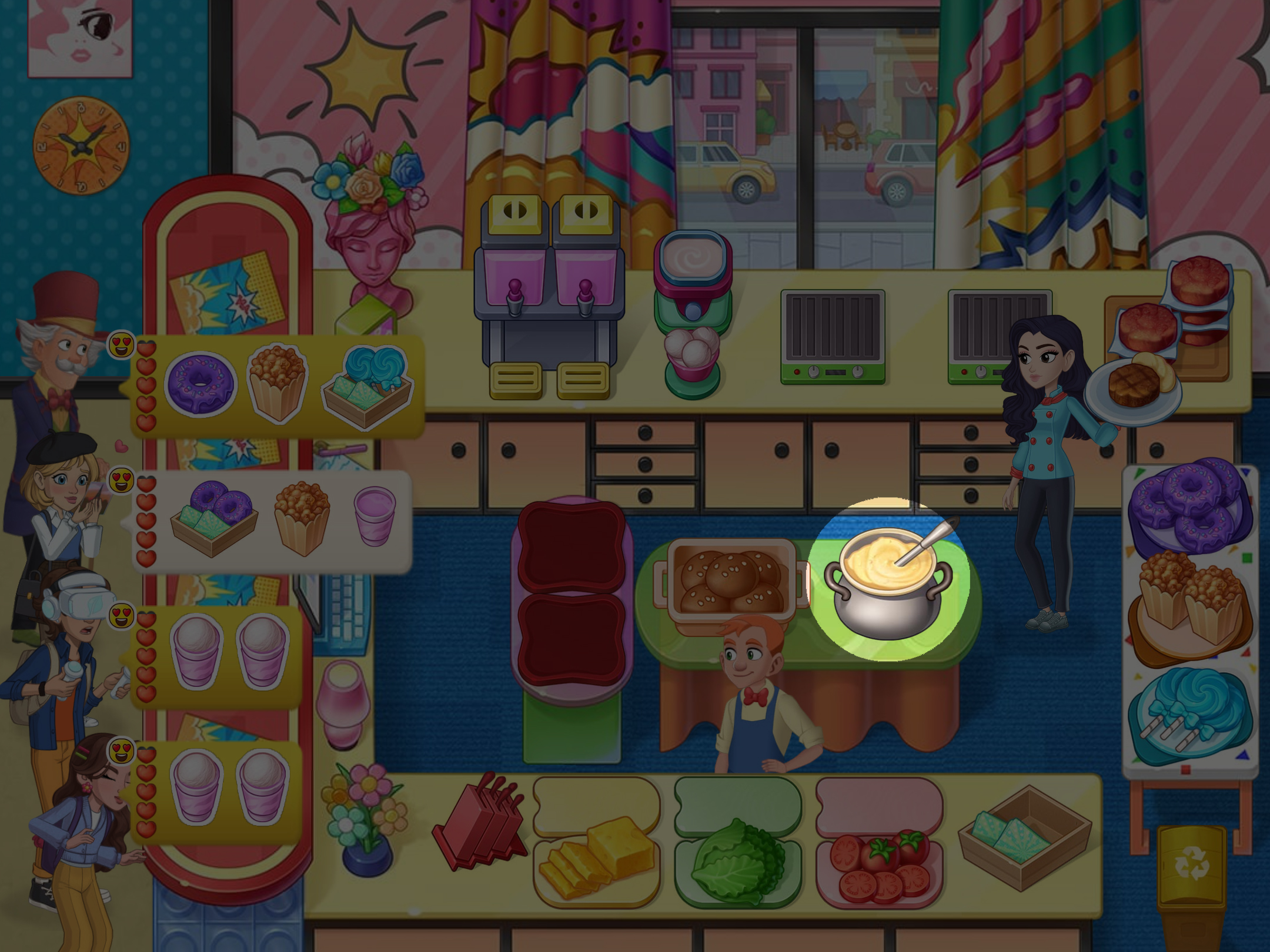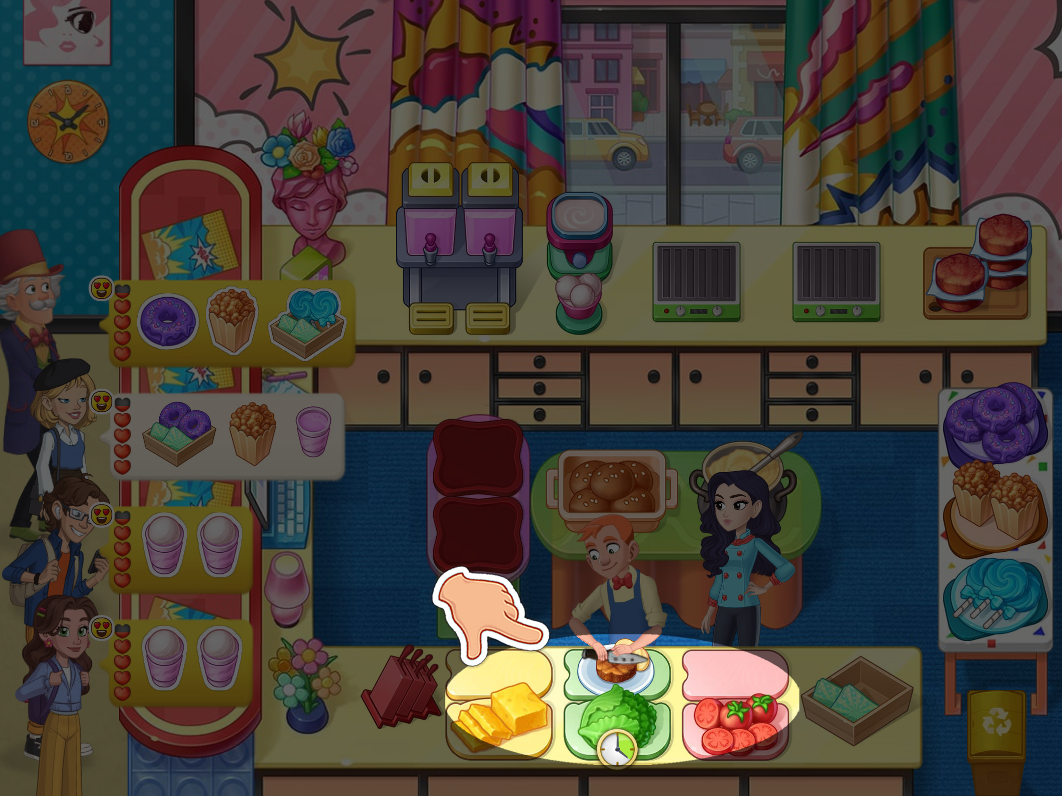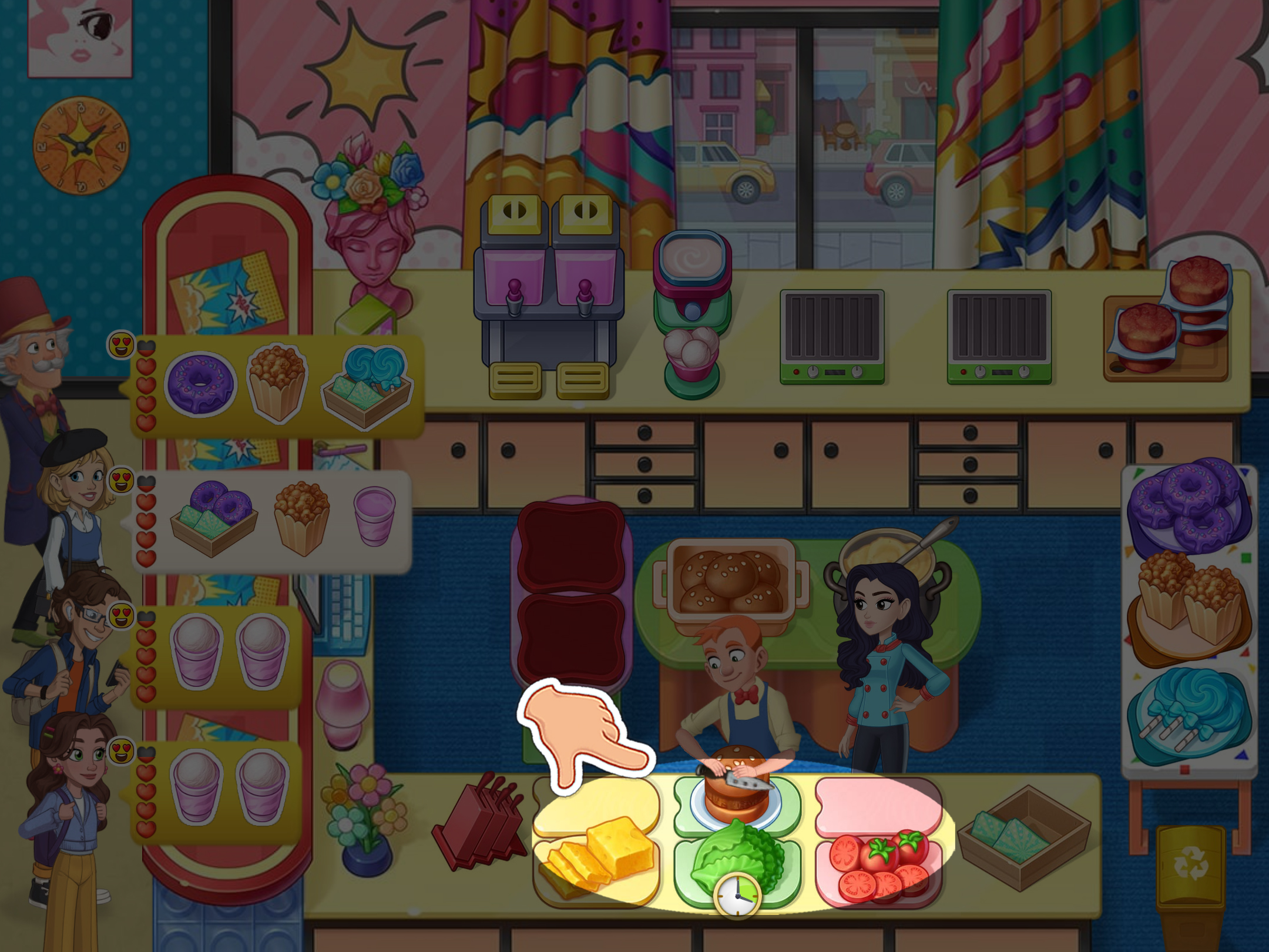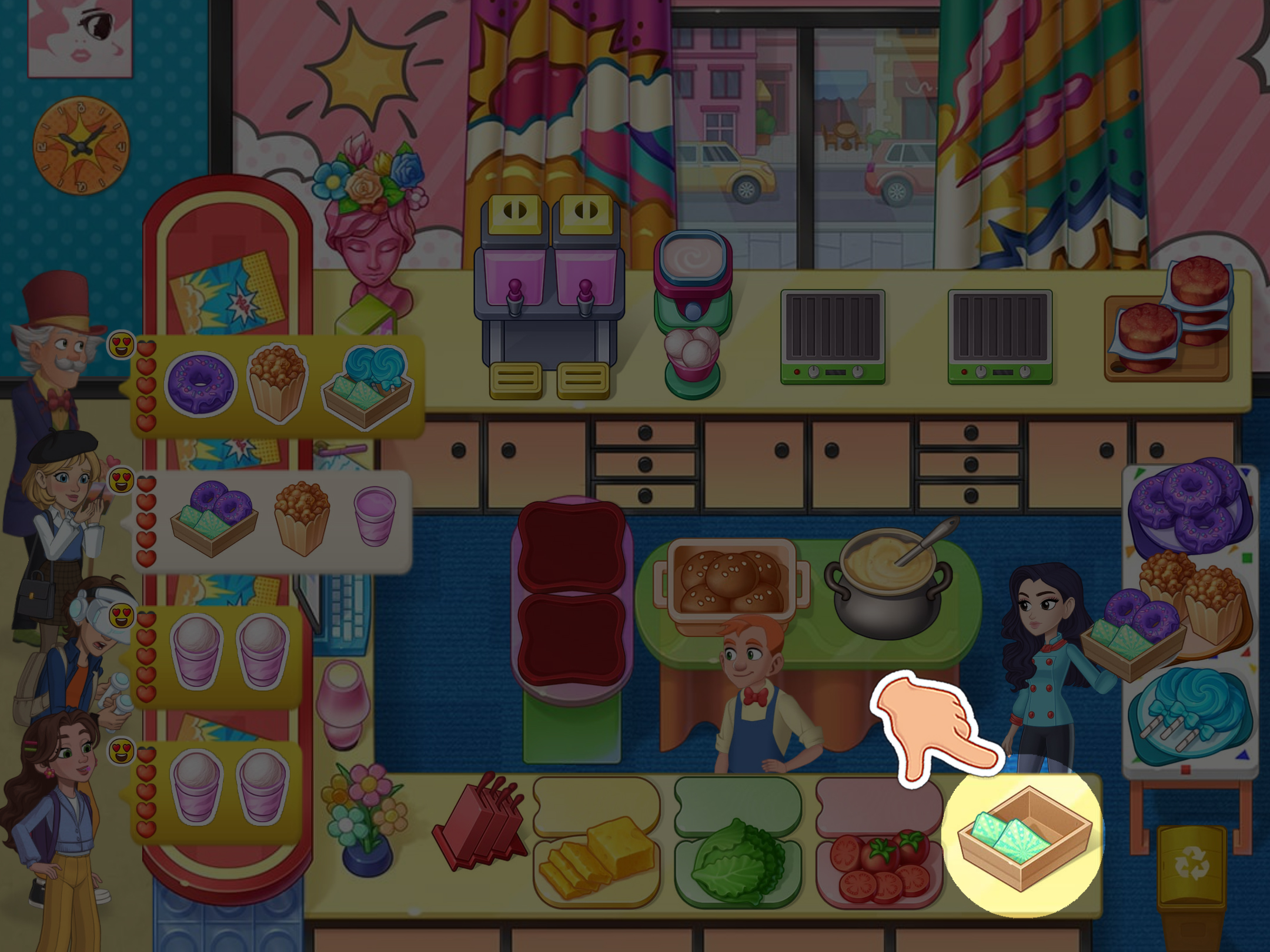 5. 必要時,將菜餚交給助手,他們會添加食材。