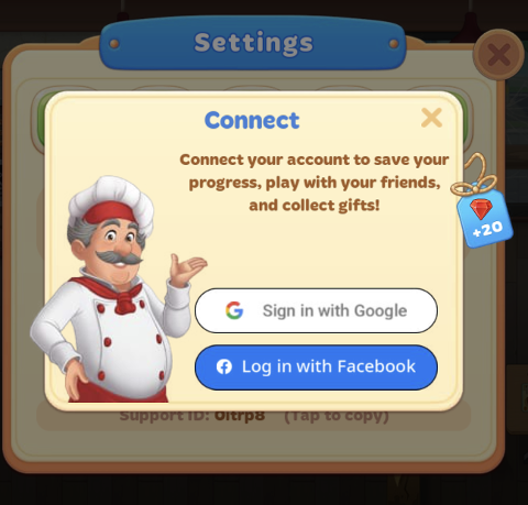 通过使用“用 Facebook 登录”功能,你可以将游戏进度绑定至你的 Facebook 帐户。请参考下列步骤操作:• 打开设置窗口